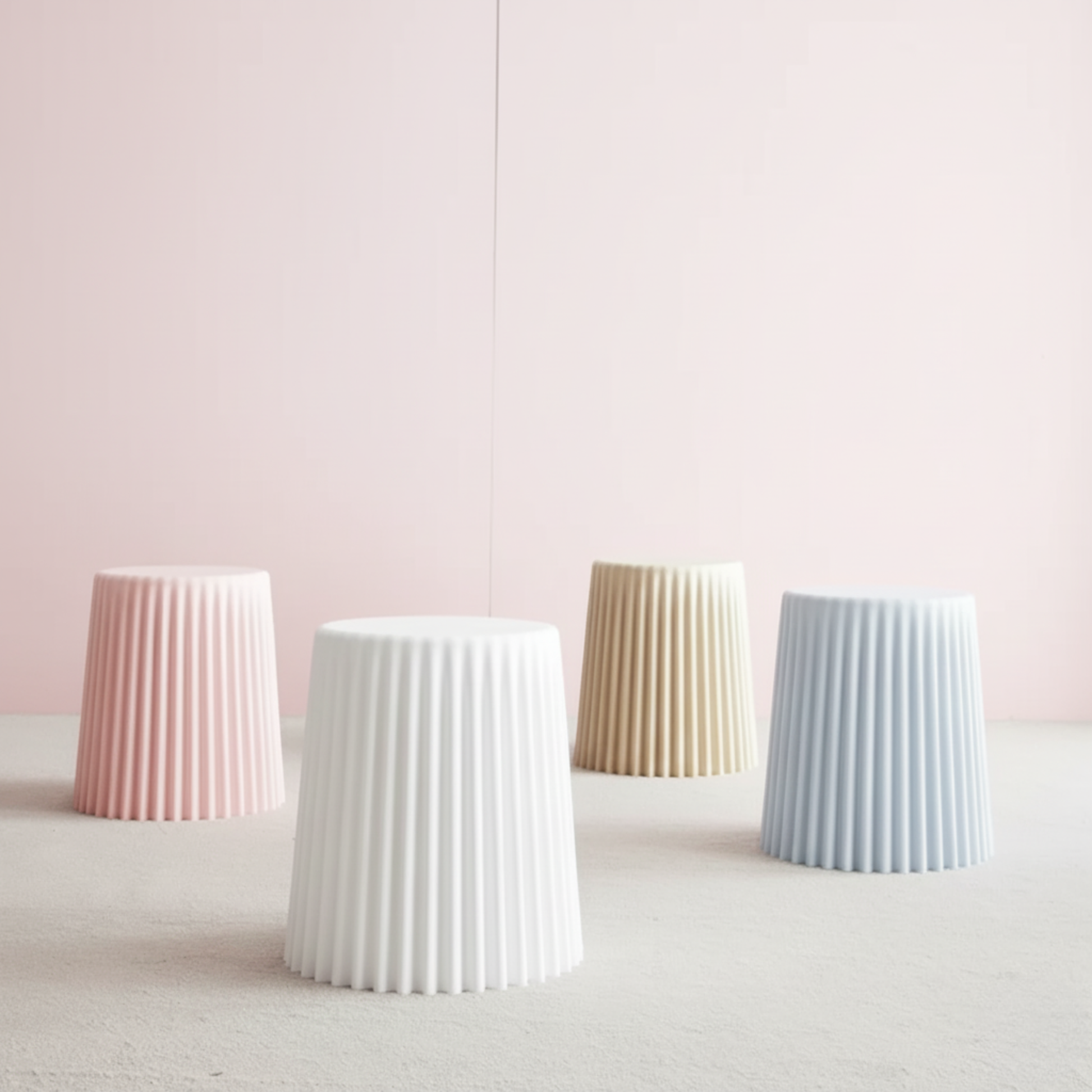 縦に入ったふんわりとしたプリーツ(ひだ)は、まるでドレスのフリルや、美味しそうなマフィンのカップみたい!どこから見てもコロンと可愛いフォルムに、思わず顔が!カラフルな色合い(ピンク、ホワイト、ゴールド、ブルー、イエロー、グレーなど)は、選ぶだけでワクワク!あなただけの「推しカラー」を見つけてください!