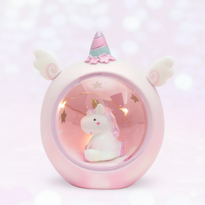 このランプはただの照明ではありません。それは、ストレスや疲れを忘れさせてくれる、あなただけの癒やしのドーム。丸いドームの中に座る、つぶらな瞳のユニコーンが、優しいLEDライトに包まれながら、あなたの心をそっと見守ってくれます。お部屋に置くだけで、まるで絵本の世界の主人公になったような、キラキラとした気分になれちゃいます!
