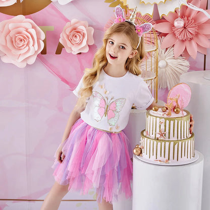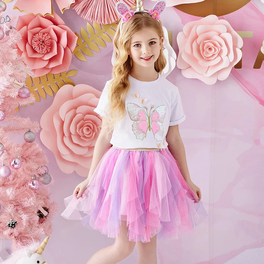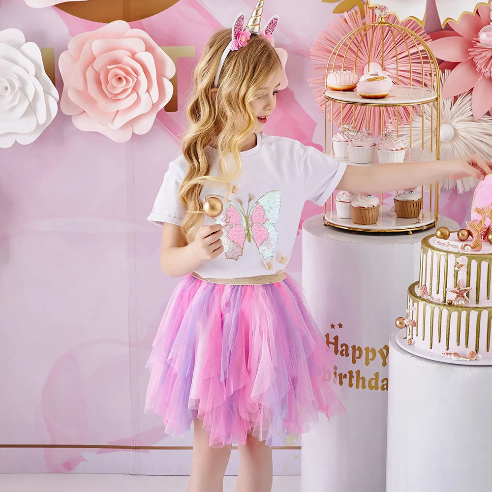 ユニコーンの森を吹き抜ける、やさしい風。 その風に乗って、ふんわりと舞い降りてきたのは、虹のかけらで編まれた特別なスカートです。 このユニコーンのチュールスカートは、カラフルなチュールが何層にも重なって、まるで雲の上を歩いているみたいに軽やかで、ふわふわ。
